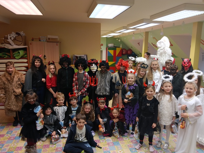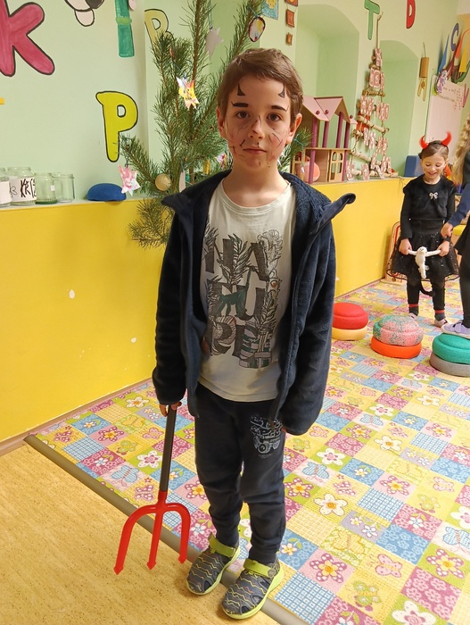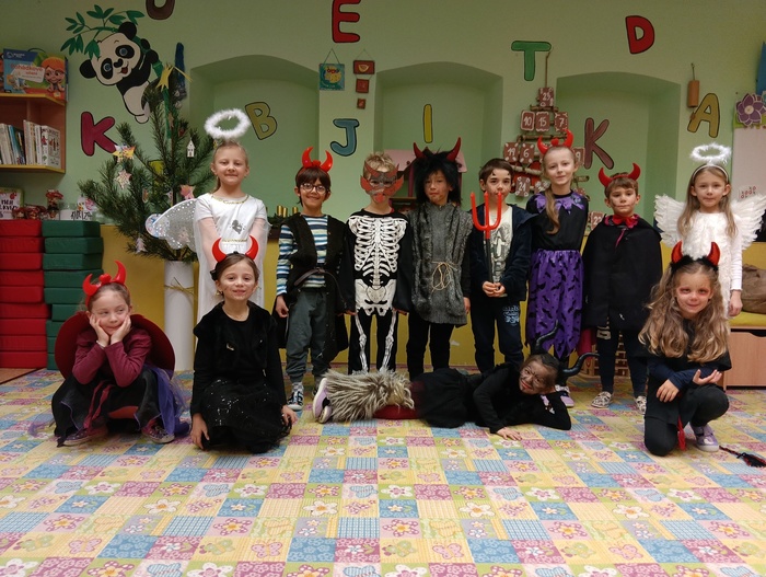 V pátek nám do školky vlítla početná čertí družina. A k údivu dětí znala veškeré hříchy dětí. Nešetřila ale ani chválou našich malých kamarádů. A protože tu máme príma partů a nějaké to zlobeníčko uteče občas každému, dostal každý svůj balíček dobrot. Všichni návštěvu zvládli bez slziček.