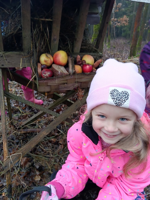 Dnes jsme se vydali do lesa, odnést dobroty do krmelce pro lesní zvířátka. Děkujeme všem rodičům, kteří poslali dobroty.