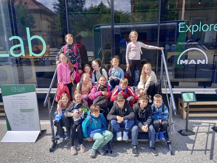 V úterý 27. 5. jsme společně s 16 páťáky navštívili na náměstí mobilní laboratoř od ŠKODA AUTO. Kromě kamionu MAN a elektromobilu Elroq 85 jsme si vyzkoušeli roboty, 3D tiskárnu, virtuální brýle, funkce Al a cyklotrenažéry. Bylo to super!