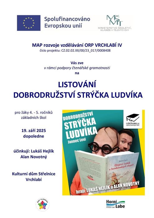 V pátek 19. září pojedou žáci 4. a 5. třídy na divadelní představení "Listování" - Dobrodružství strýčka Ludvíka od pana spisovatele - J. Levi.